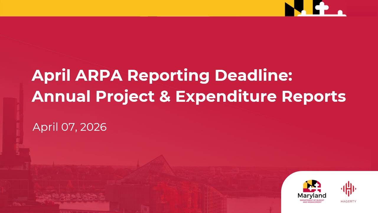 This webinar reviewed ARPA SLFRF reporting trends and data analysis across the nation, analyzing Project and Expenditure Report data published by the US Department of the Treasury. The webinar highlighted Maryland NEU data, drawing conclusions on Maryland obligations, expenditures and projects. Additionally, the webinar reviewed Grant Award summaries provided for Maryland NEUs and flagged the Obligation Deadline Reminder.